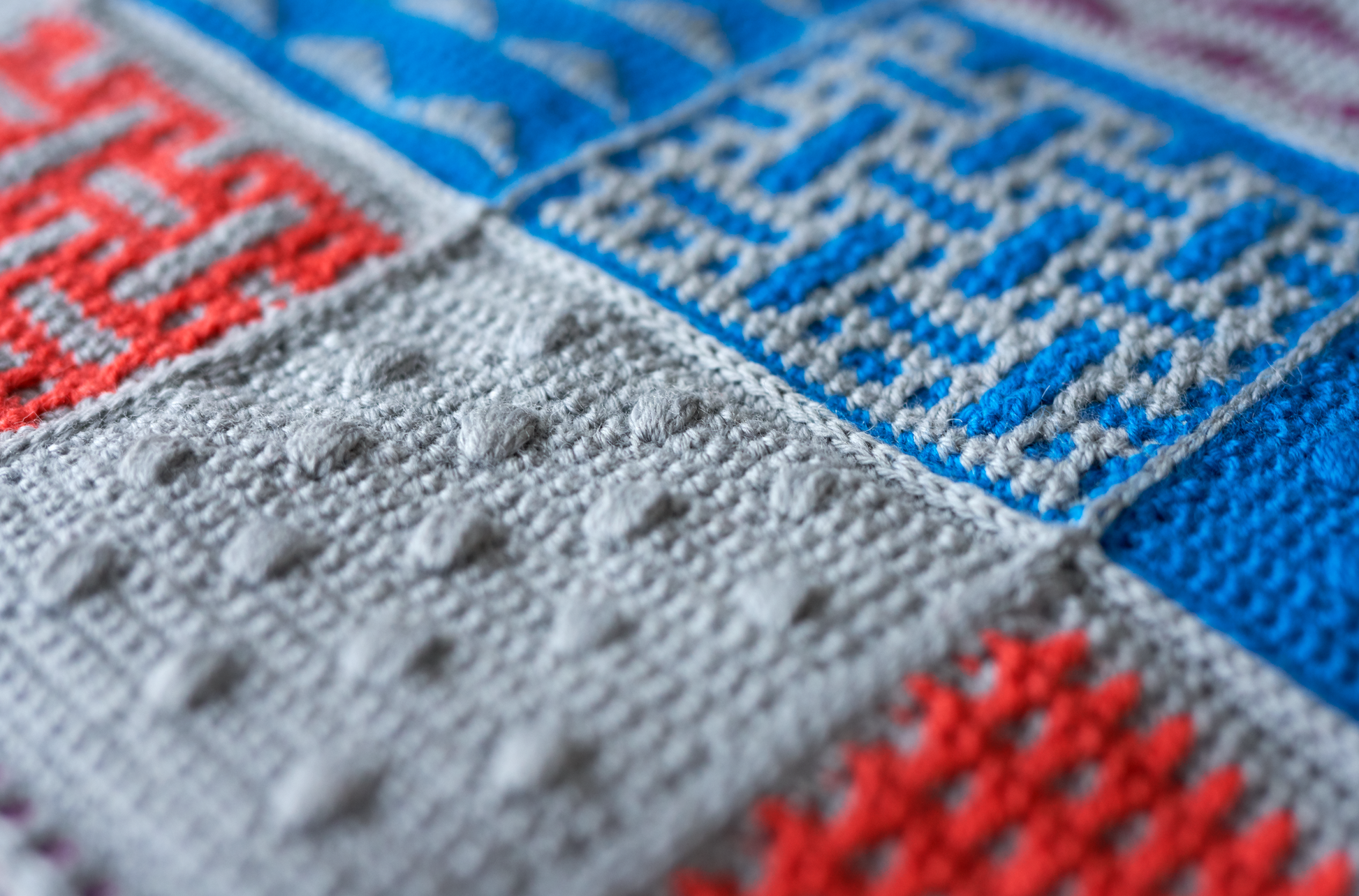 "I wanted this blanket to have a modern twist in the design to symbolise the here and now. The modern shapes and bright colours bring a modern edge to this traditional craft." - Anna Nikipirowicz